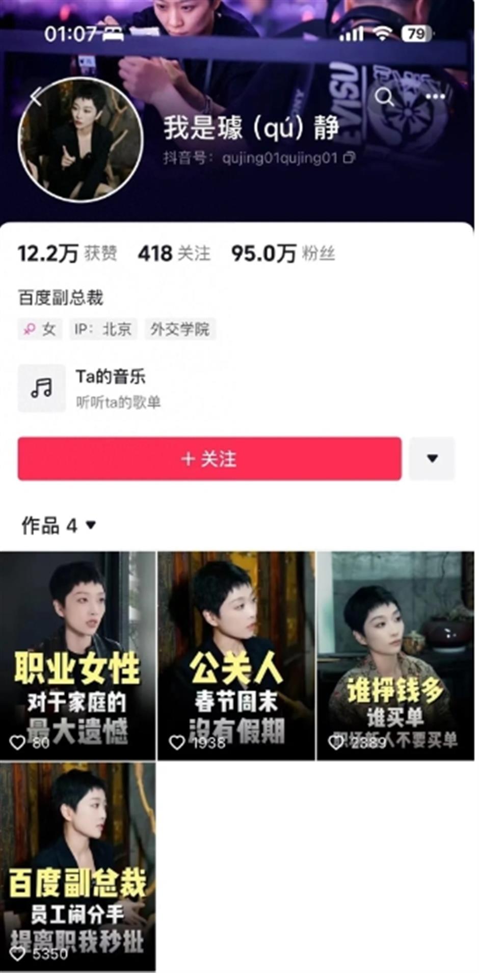 qu deleted all the videos from her douyin account on may 7.