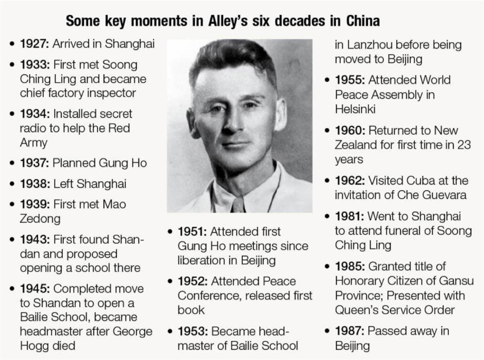alley was a key figure in the setting up of the so-called bailie schools, named after joseph bailie, an educator who he met back in shanghai and came up with the idea of creating schools to help lift china from poverty. with japan occupying much of the country, the schools had been forced inland, but the kuomintang kept catching up and trying to interfere.