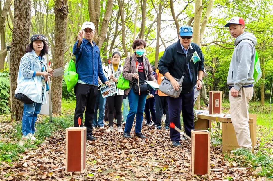 in the orienteering event, participants cycled 30 kilometers and walked 3 kilometers. the route took them through a 133-hectare wood with rich variety of vegetation, where they had to find eight spots such as a local agricultural produce purchase center, a wood café and a minsu (chinese version of b&b), and play interactive games.